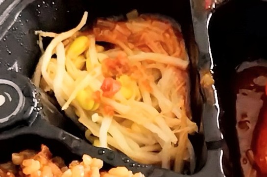 豆もやしのナムルにはベーコンが入っており、しっかりとしたコクのある味付けです。
