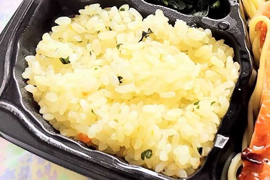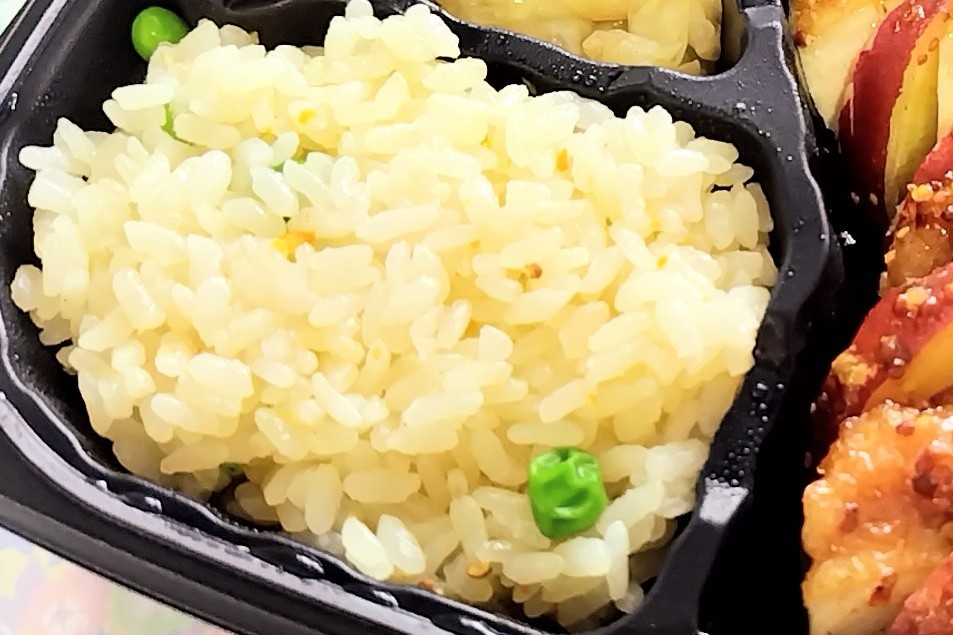 グリンピースピラフは程よい塩味で、全体の味を引き立てています。