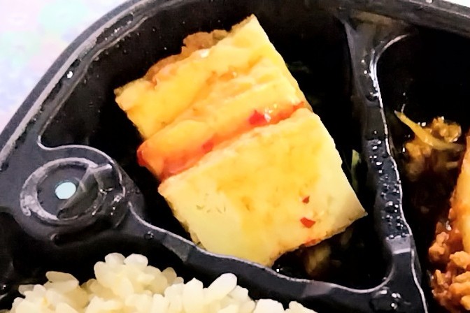 厚揚げには甘めのチリソースがかかっており、下に添えられた小松菜と一緒に食べるとより美味しさが引き立ちます。